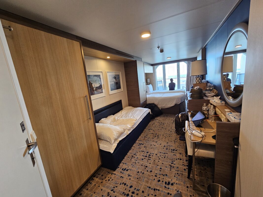 This cruise cabin hack has the most relevance to newer cruise ships. Look for “hidden” storage spaces behind mirrors or wood paneling. Sometimes, you may be pleasantly surprised to find additional shelves or cubbies. If you do not find any, you should ask your stateroom attendant whether you have overlooked anything.